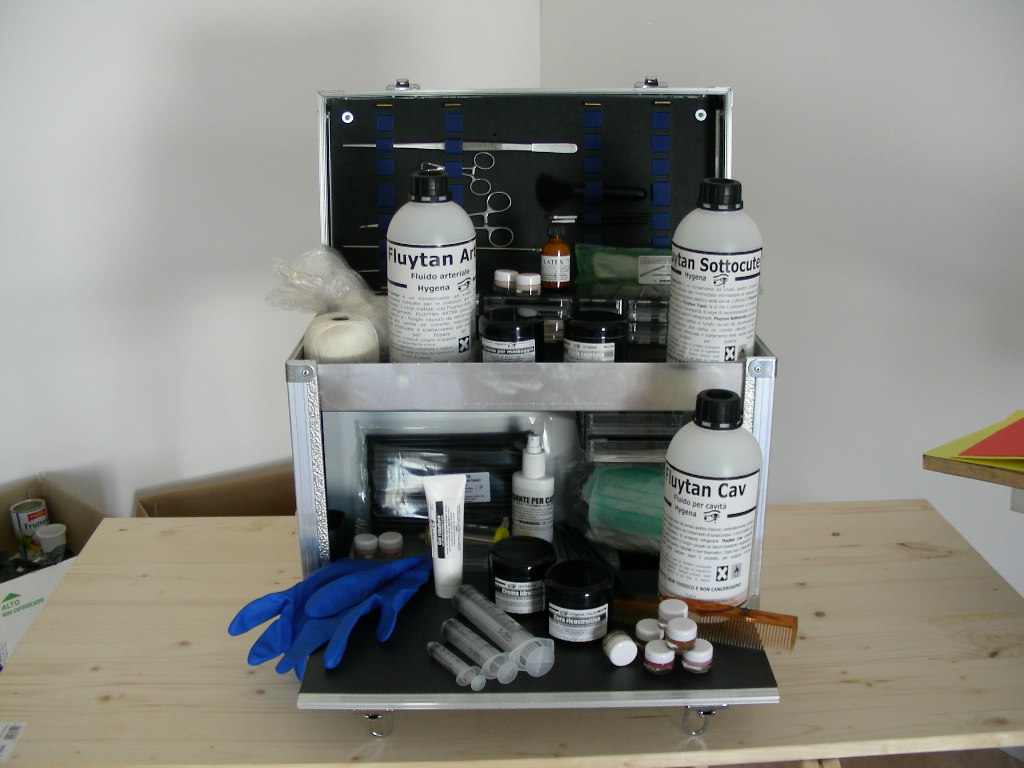 Il kit Professional fluidi - è la soluzione adatta per una corretta e valida conservazione della salma a 360°. Grazie all’utilizzo di prodotti della gamma Fluytan che consentono di arrestare i processi putrefattivi, si garantirà una veglia della salma senza visioni di trasformazioni cadaveriche.